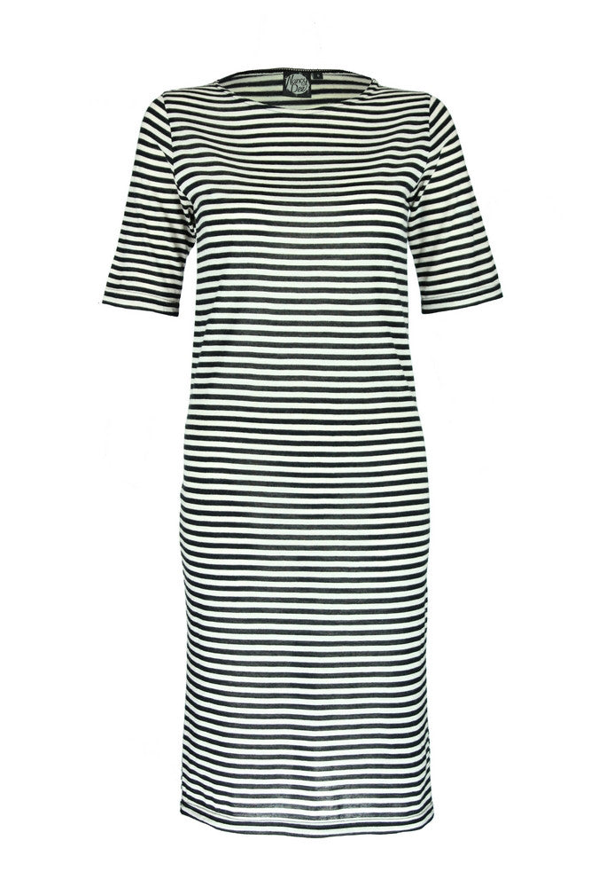 Loose fitting around the waist but fitted on the hips and shoulders making it a comfortable and flattering fit (as opposed to clingy and overly revealing), the Cece dress is a truly versatile wonder.. The elbow length sleeves and high round neck make this a great style for everyday wear, while the length can be adjusted by belting at the waist.