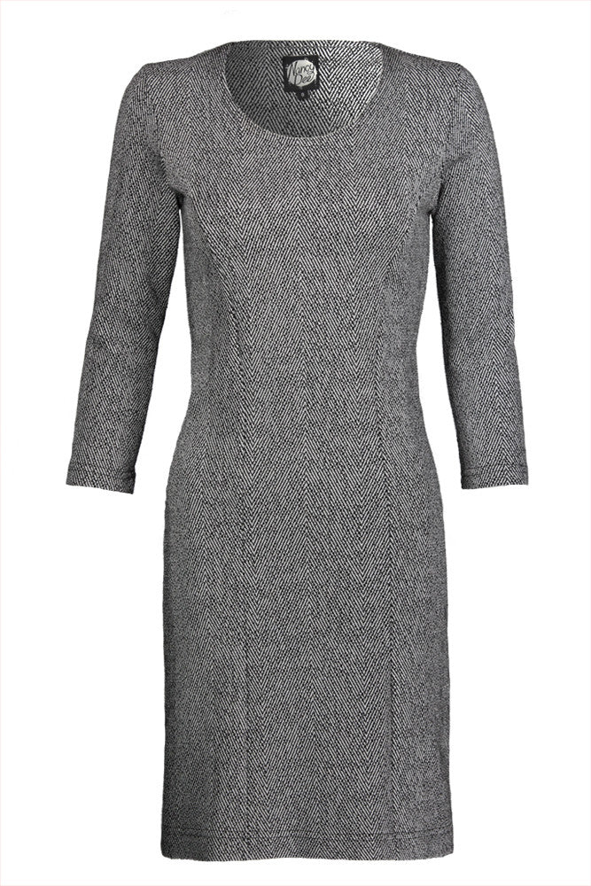 This simple and classic shift dress has a demure scoop neckline and 3/4 length sleeves.The seams front and back give it a softly tailored look, while the medium-weight British-made herringbone fabric feels both structured and very comfortable. A fabulous work wear dress that translates perfectly for smart evening occasions.