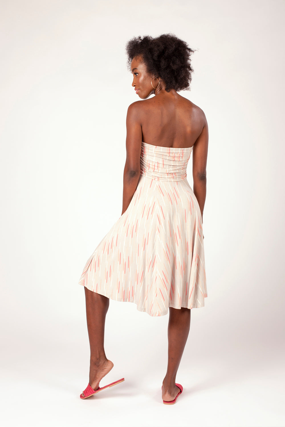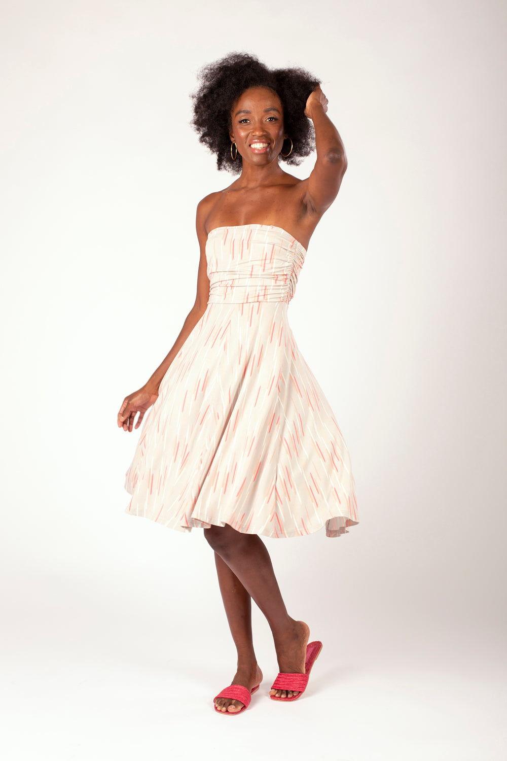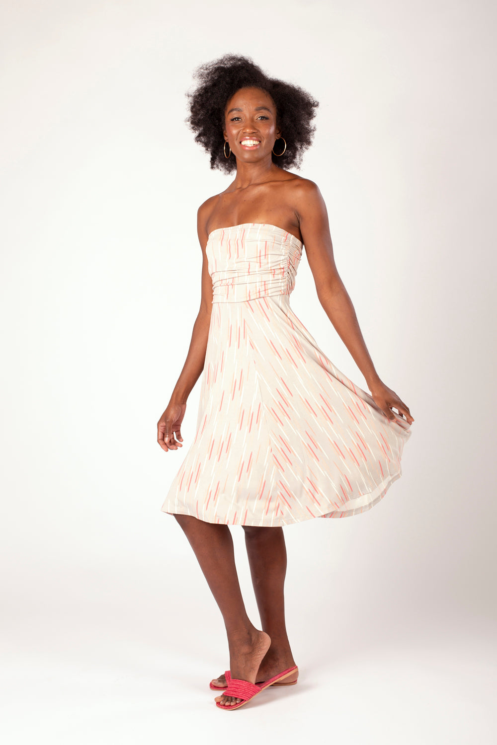 With a flattering full skirt and featuring a ruched, double-layer bust panel, reinforced with elastic at the top, the strapless Odette is a great dress for holidays and summery days.Roll it up and pack it in your suitcase for a comfortable 'throwover' dress that will take you from beach to sightseeing to dinner.