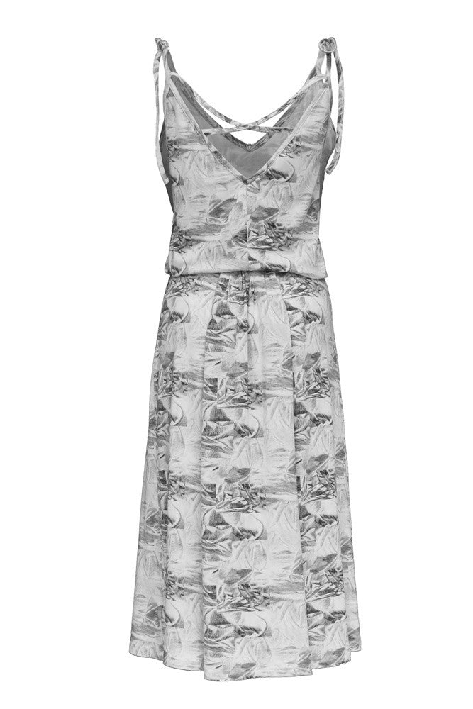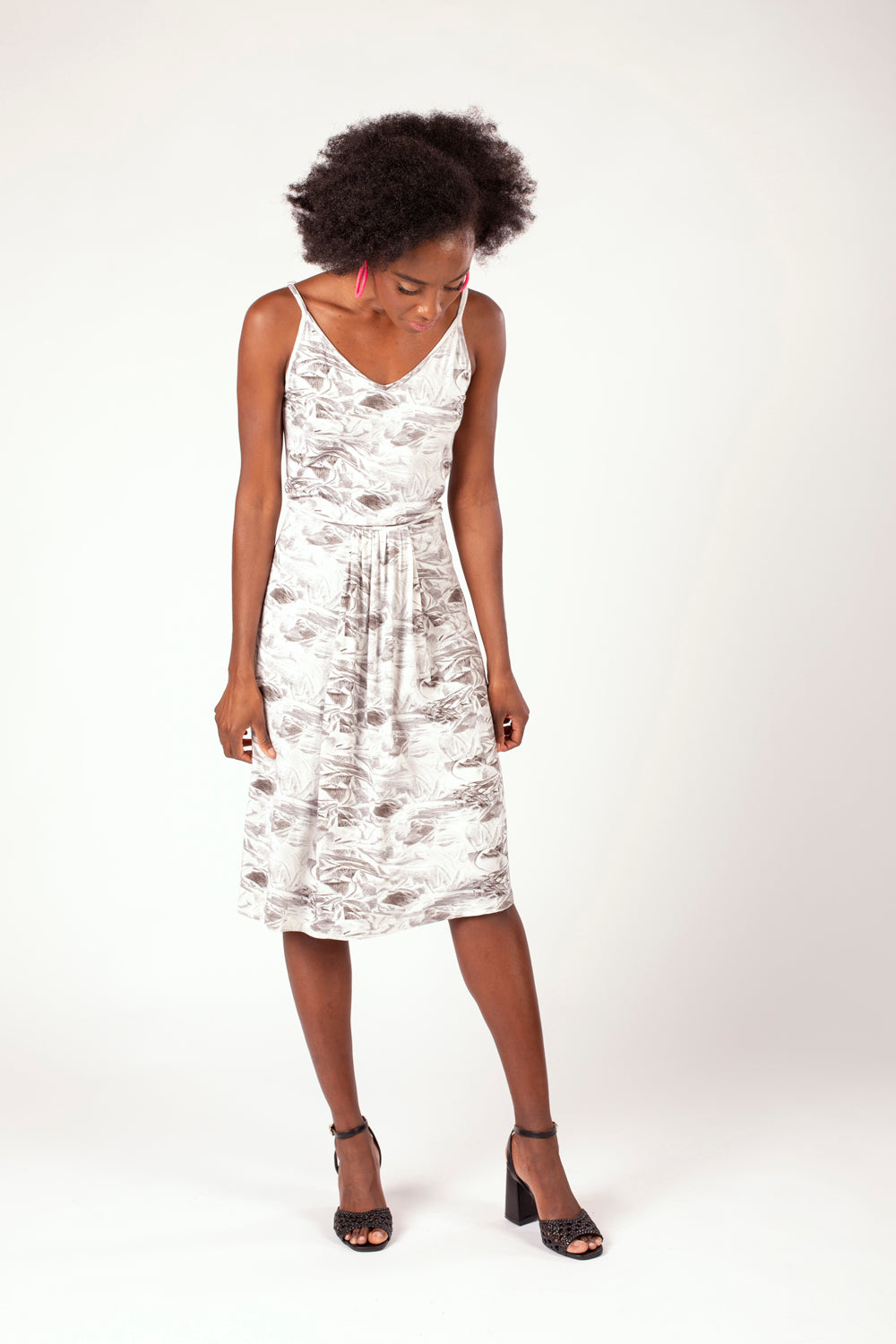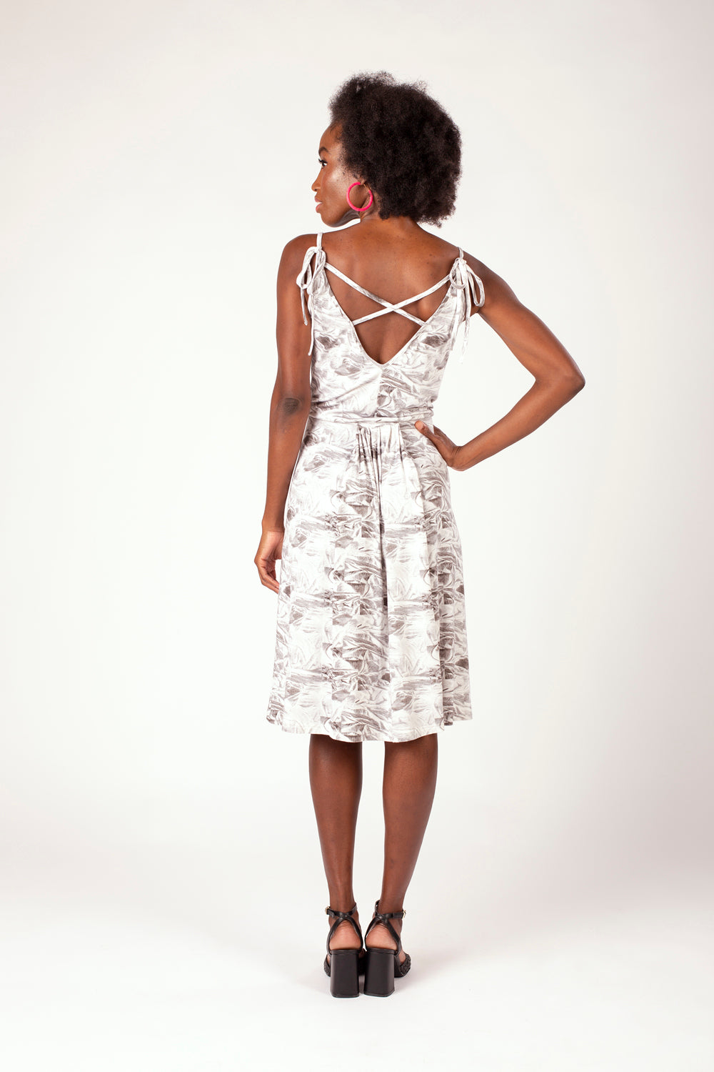 A wonderfully versatile dress for the summer, Thelma features adjustable tie shoulder straps and cross-over straps at the V-neck back. The knee length skirt features intricate pleating at the centre front and back giving extra fullness and a beautiful drape to the dress. Available in three different colour options, this dress will be you summer wardrobe staple, easy to pair with heels or flats, little jacket or slouchy jumper.